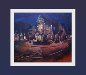 People can be so kind. I felt so welcome and cared for while stood on the street corner every night working on this painting. I met all kinds of lovely people who wanted to make sure I was doing ok. The staff at the Yewdale brought me delicious cups of hot chocolate with cream on top. I recommend their hot chocolate, really lovely, and Harry, of Harry’s restaurant, which you can see in the painting, gave me a Pizza. IT WAS A GREAT PIZZA, just like a proper home made pizza, none of this mega greasy, plastic ham rubbish, it had proper meat and proper cheese. great pizza. So go and eat Harry’s pizza’s and drink Yewdale Hot chocolate. Now would be a good time to mention the really good cups of tea at Gillam’s in Ulverston, and the coffee at Lucy’s on a plate. (where I should also plug my little exhibition) I don’t know if it is that when you are really cold everything tastes better, I’d like to believe that all of these places have given me the choicest cups of tea, like their specialities, because Gillam’s was a better than average cup of tea, and likewise the Yewdale hot chocolate and all the rest of them, they must be able to tell I’m a discerning kind of tramp who appreciates quality refreshments.