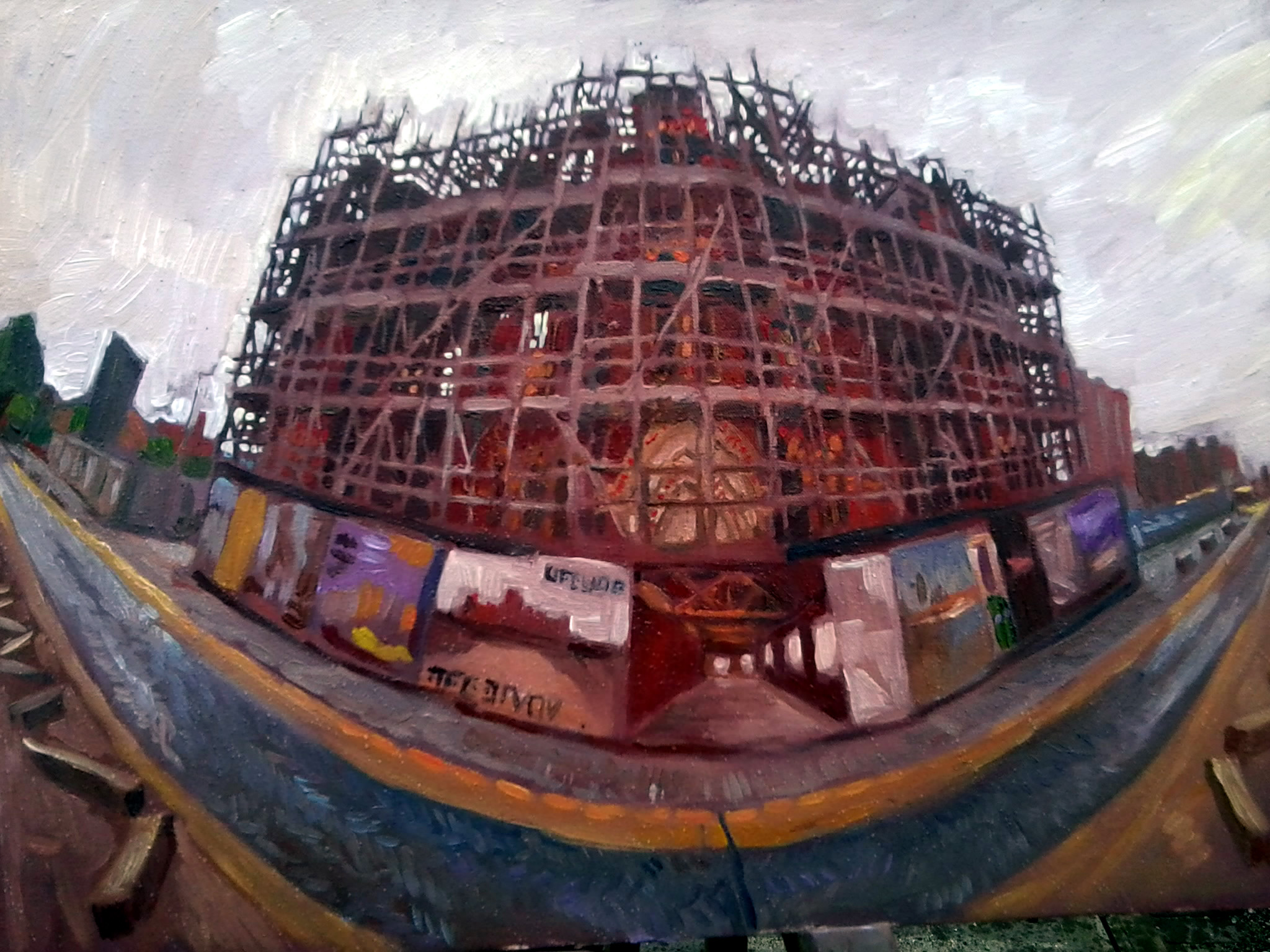 There are a lot of people disappointed that its going to be pulled down, especially as Urban Splash promised to renovate it.  It has a special place in history and is a beautiful building.  I haven’t quite finished the painting, but it was a race against time and I won’t be able to go back and do more work on it from life.  Here’s what it looked like inside.