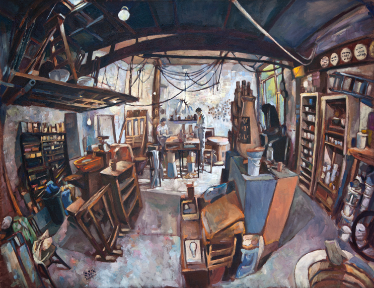 The painting is of From Space with Liz Scrine and Pascal, its not my current studio.